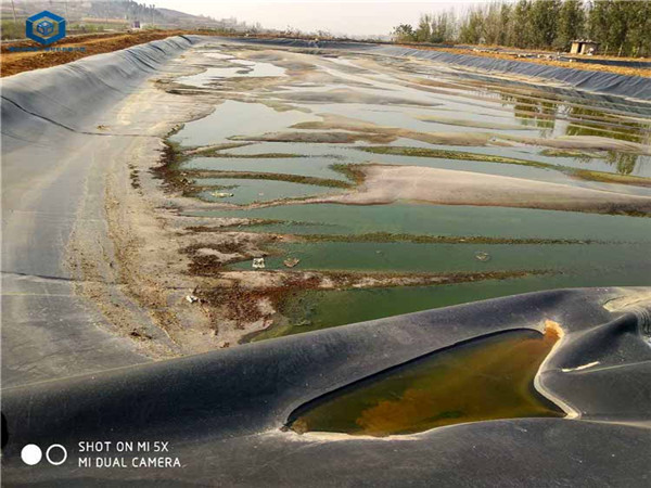 防滲池底膜鋪設建議使用1.2mm以上的防滲膜。鋪防滲膜是整個防滲系統中一道關鍵的工序。鋪設前,施工部門會同有關部門對基底進行檢查驗收。在鋪膜前對防滲膜外觀質量進行開包檢查,記錄并修補已發現的機械損傷和生產創傷、孔洞、折損等。防滲膜裁切之前,經丈量其相關尺寸,然后按實際裁切,逐片編號并作記錄,同時對場地在平面圖上編號。在膜鋪設中膜與膜之間接縫的搭接寬度不小于100毫米,使接縫排列方向平行于大坡腳線,即沿坡度方向排列。底膜鋪設過程中需要用到繩梯等輔材,膜鋪設完畢后,在一般邊坡和場地,鋪設組人員在檢查鋪設區域內的每片膜的編號與平面布置圖的編號一致,并確認無誤后,按規定就位膜的位置立即用沙袋進行臨時錨固,然后檢查膜片的搭界寬度不小于10厘米,需要調整時及時調整,為下道工序作好充分準備。然后 順次鋪設邊坡防滲膜,在拐角等不規則范圍內的膜片裁成上寬下小的“倒 梯形”,其寬窄比例操作人員應根據現場的實際情況和邊坡的具體尺寸計算。若該比例掌握不準,會導致邊坡上的膜面“起鼓”或“懸空”,此環節重點是管道與防滲膜的粘接,一定要用擠壓焊進行仔細包裹以防止粘接不嚴的現象。在池底預留一部分防滲膜形成褶皺,這是為了將來糞水在重力作用下擠壓防滲膜,同時還可能造成池底下沉,預留一部分防滲膜,可有效降低上述原因導致的池底防滲膜拉伸破裂。