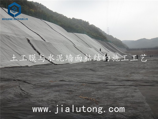 土工膜與水泥墻面粘結可采用以下施工工藝:一、用鋼刷清除砼表面浮漿,涂刷打底料(干面用PE膠),用PE膠將PE膜面粘合于砼上。二、用鋼刷清除砼表面的浮漿,預先在PE膜表面涂一道PE膠,待3-5分鐘后按壓即可。PE復合土工膜與砼之間采用PE膠粘結的優點是:由于PE膠中沒有溶劑,粘結密封效果好;并且PE膠具有較大的斷裂伸長率(達到800%以上),彈性模量較低,當砼基層表面產生裂縫時,可以保護表面的PE復合土工膜不被拉破。為確保密封粘接,建議施膠兩次。次使膠液滲入土工布,主要起密封防水作用。此次施膠應待膠粘劑涼至指干時(不低于1小時)。第二次施膠根據環境條件,待膠層涼至指干時(約20分鐘左右)膠層達到融合即可。
